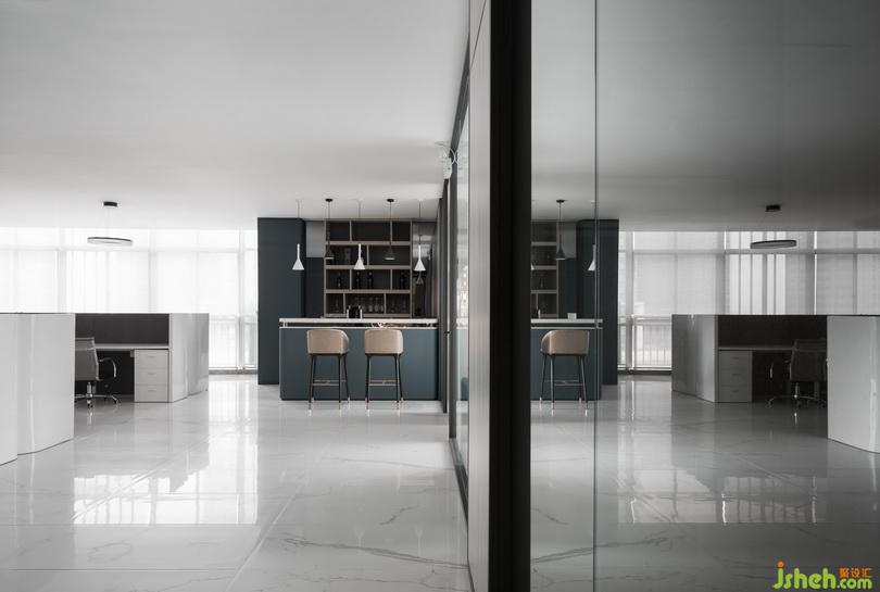 私人辦公空間格局并沒有過多的復(fù)雜,透明玻璃隔斷的設(shè)計使其劃分了空間私密感之余,又不會太過的規(guī)定界限。設(shè)計公司