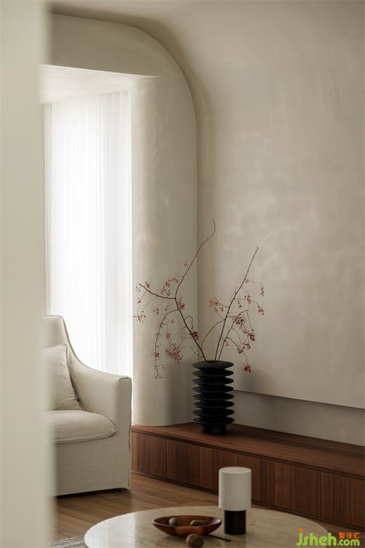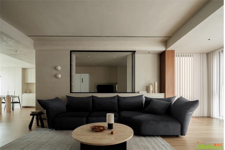 低飽和度深入人心,光影與線條勾勒出流暢、利落的空間調(diào)性,微弱的光線穿過素雅的紗簾,在柔軟的織物上灑下斑駁光影,仿佛時(shí)間都靜止了,悠閑而舒適。空間之間有機(jī)結(jié)合,裝修設(shè)計(jì)開闊的客廳空間與廚房互通有無,一隅玻璃里是細(xì)節(jié)的裝飾,材質(zhì)的拼接,都指向居者的內(nèi)心領(lǐng)悟和豁達(dá)。