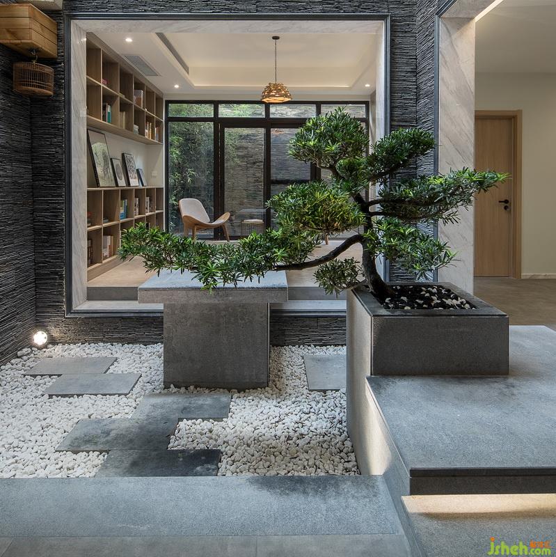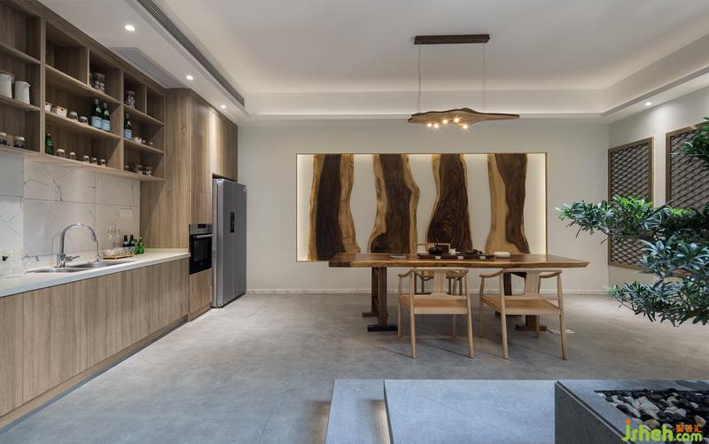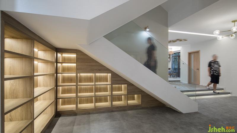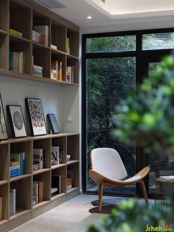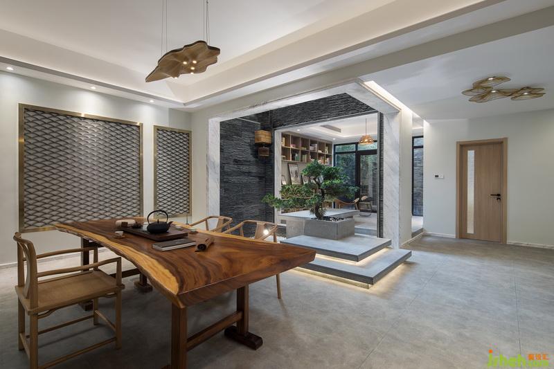 我們的設(shè)計重心:原本房屋有一個電梯井,在設(shè)計的時候,決定舍棄電梯,把電梯井的位置做成一個日式干景,而且在上面還做了一個瑜伽臺,變成茶室與閱讀區(qū)的一個過渡空間,讓三者之間互相融合,做成一個有意境的區(qū)域,并且做了抬高處理,與兒童娛樂區(qū)有了一個劃分,動線更加明確,整個負一樓的空間結(jié)構(gòu)增強。