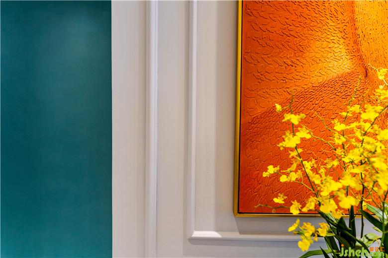 石膏線條在凸出的大理石電視背景墻左右兩側(cè)各自成為風(fēng)景,更妙的是,左側(cè)的盆栽就像是長(zhǎng)在畫里一樣,與墻面對(duì)比,橙色+黃色+藍(lán)綠色這樣的顏色搭配,給予了房子更多的趣味!