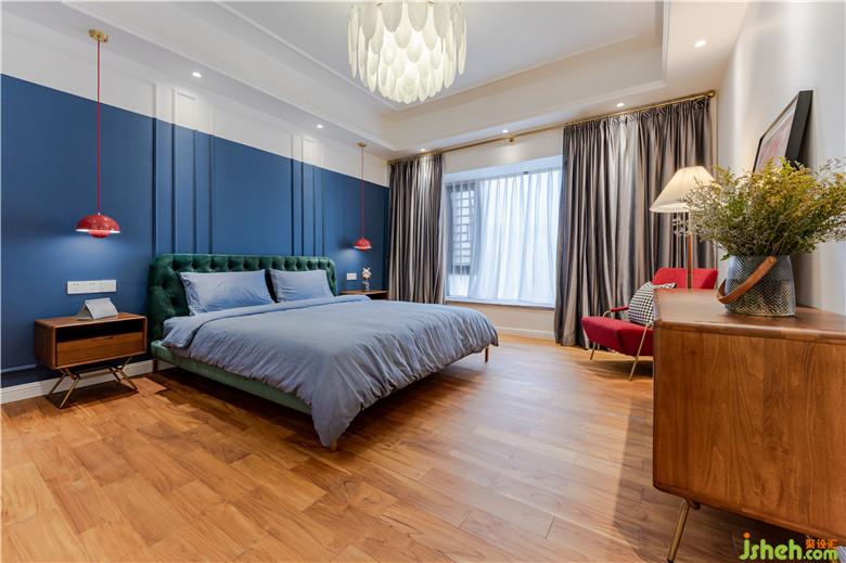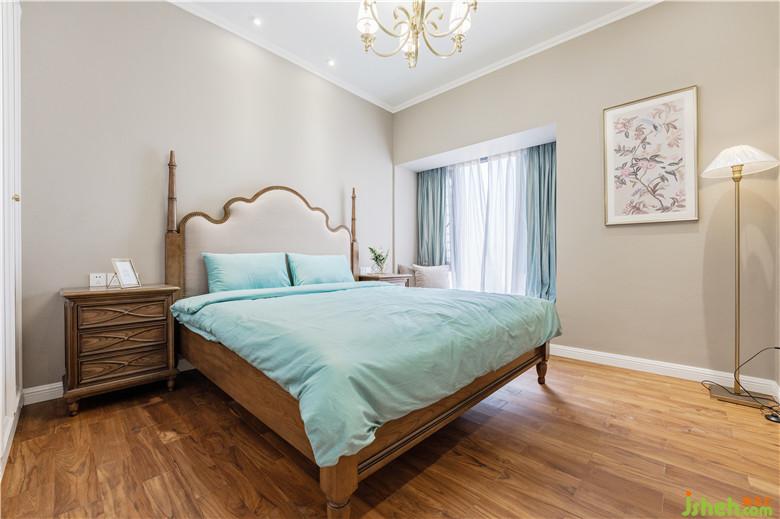 與兒童房、主人房的跳色亮色相比較,長(zhǎng)輩房的主打色與墻體色更為淡雅一點(diǎn),選擇了卡其色,長(zhǎng)輩房需要打造安眠環(huán)境。配合床頭柜與床復(fù)古田園感。定制的衣柜也是偏素雅。