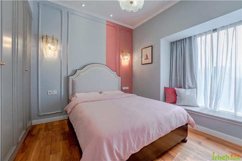 女兒房。粉色估計(jì)是每個(gè)小女孩最?lèi)?ài)的顏色吧,把它用在兒童房最適合不過(guò)了,公主般的床頭燈也是好看得很。粉色選擇了比較耐看深一點(diǎn)的粉色,三分之一的粉色與淺灰色對(duì)比撞色,個(gè)性且特別,孩子長(zhǎng)大了也依然不會(huì)覺(jué)得幼稚的顏色搭配選擇,非常耐看。