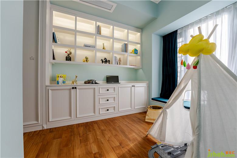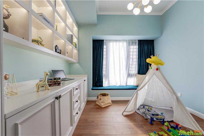 法式不一定是滿(mǎn)墻繁復(fù)的線(xiàn)條,簡(jiǎn)單的色彩碰撞與搭配,恰到好處的書(shū)柜書(shū)桌設(shè)計(jì),會(huì)令你頓然覺(jué)得“剛剛好”。什么顏色最適合學(xué)習(xí)與玩耍?我給的答案是“剛剛好淺藍(lán)色”。