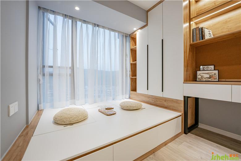 餐廳背后便是榻榻米休閑品茶區(qū),靠墻處也是工作區(qū)。用餐桌去進行隔斷是較多業(yè)主的選擇哦,因為不僅僅空間大了,視野更是開闊不少。休閑區(qū)里的飄窗變榻榻米,靠墻處是書桌,既是休閑區(qū)也是半開放式小書房,真正做到了“一室多用”。有朋友來訪時,在榻榻米上品品茶聊聊天,獨子一人或者與伴侶二人時,看看書擼擼貓,無疑是最好的消遣方式了。