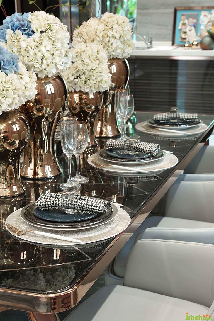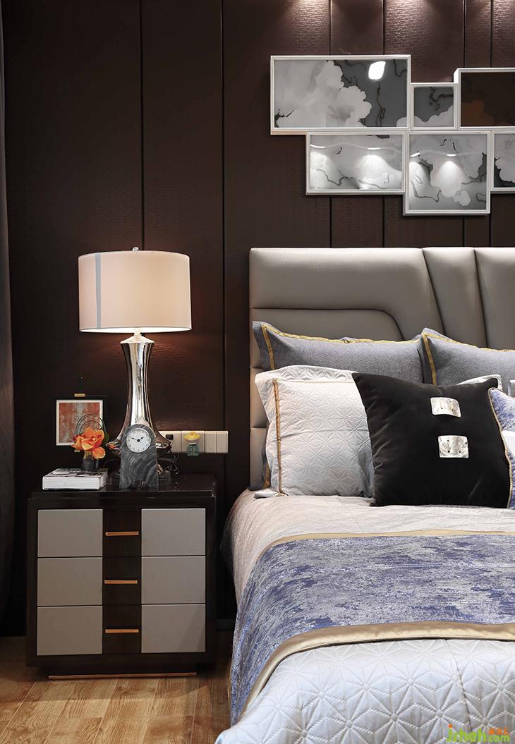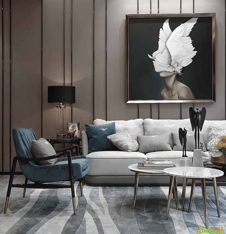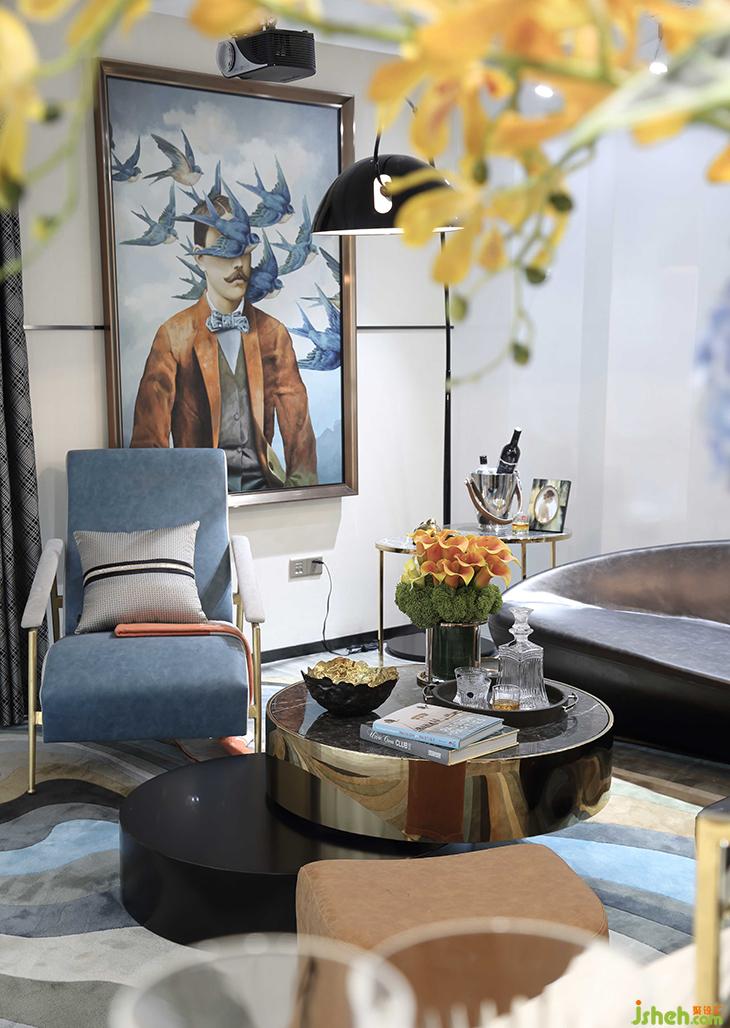 客廳《守望天使》的當(dāng)代畫作,超現(xiàn)實(shí)主義的夢(mèng)幻與先鋒畫派的高冷交織出迷離的美,與何多苓畫布上仙氣飄渺的花兒何其接近:茫然而詩(shī)意,傳遞出城市人普遍共有的精神特征,我們茫然地躬行在人生旅途,所幸頭頂有詩(shī)意的星空可以仰望。