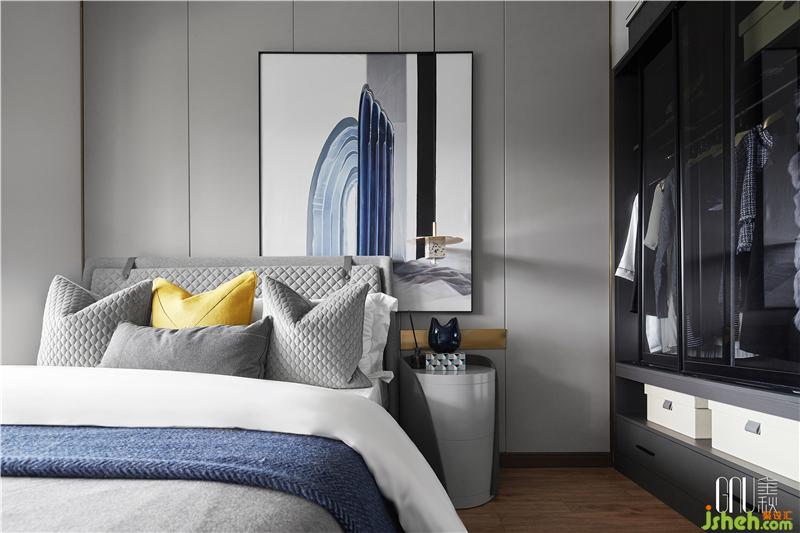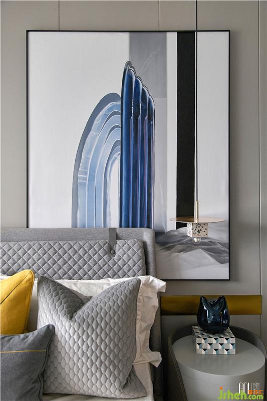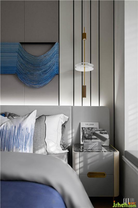 主臥以清爽淡雅的色調(diào)展現(xiàn)出不疾不徐的姿態(tài),如流水般柔而能克剛,靜而能映物,輔以織物的不同質(zhì)地、以細(xì)節(jié)呼應(yīng)的吊燈和擺飾,一個(gè)時(shí)尚獨(dú)立又恬靜優(yōu)雅的女主人形象呼之欲出。