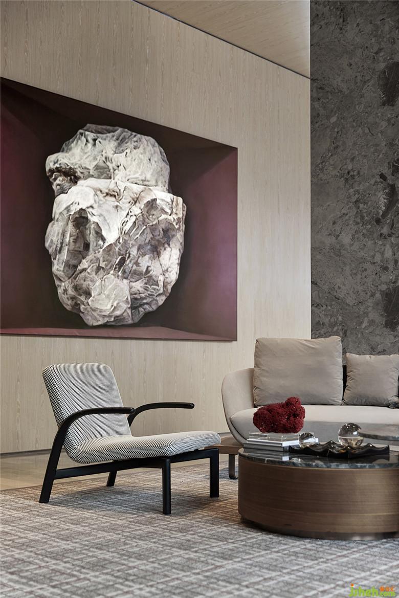 VIP室的設(shè)計把點亮空間的任務(wù)留給了綰色,通過材質(zhì)的對比與藝術(shù)掛畫的意境,營造自然、沉穩(wěn)、溫潤的氛圍。