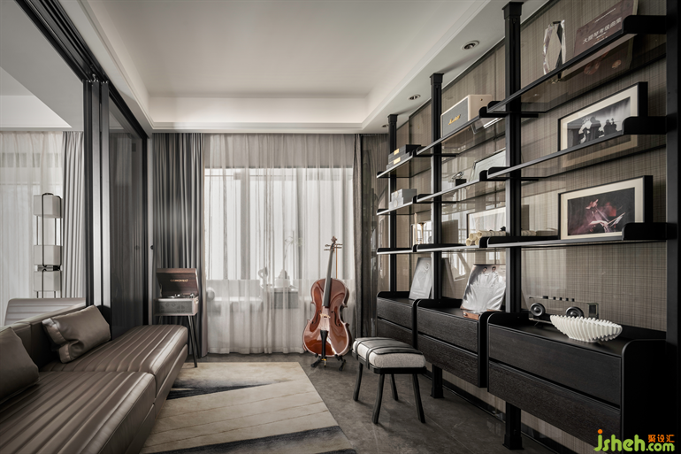 這是一個百變空間,既能成全居者的個性興趣愛好,又能作為臨時的客房使用,樣板房設計還能成為客廳的延展,滿足各種社交的需求。音樂相關元素的鋪陳,勾勒藝術、高雅的居所意韻,宴請賓客時,這里可以成為氣氛的最佳催化劑,并與客廳形成親密的聯(lián)動。