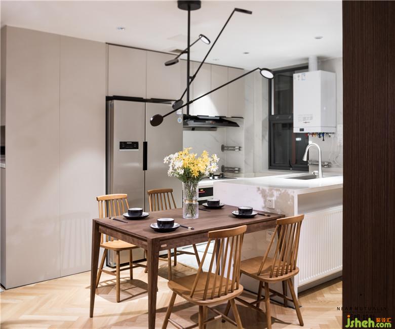 廚房改成開放式廚房,增加島臺餐臺,使餐廳廚房一體化。