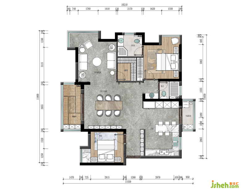 室內(nèi)設(shè)計師將原來的次臥作為主臥的區(qū)域。