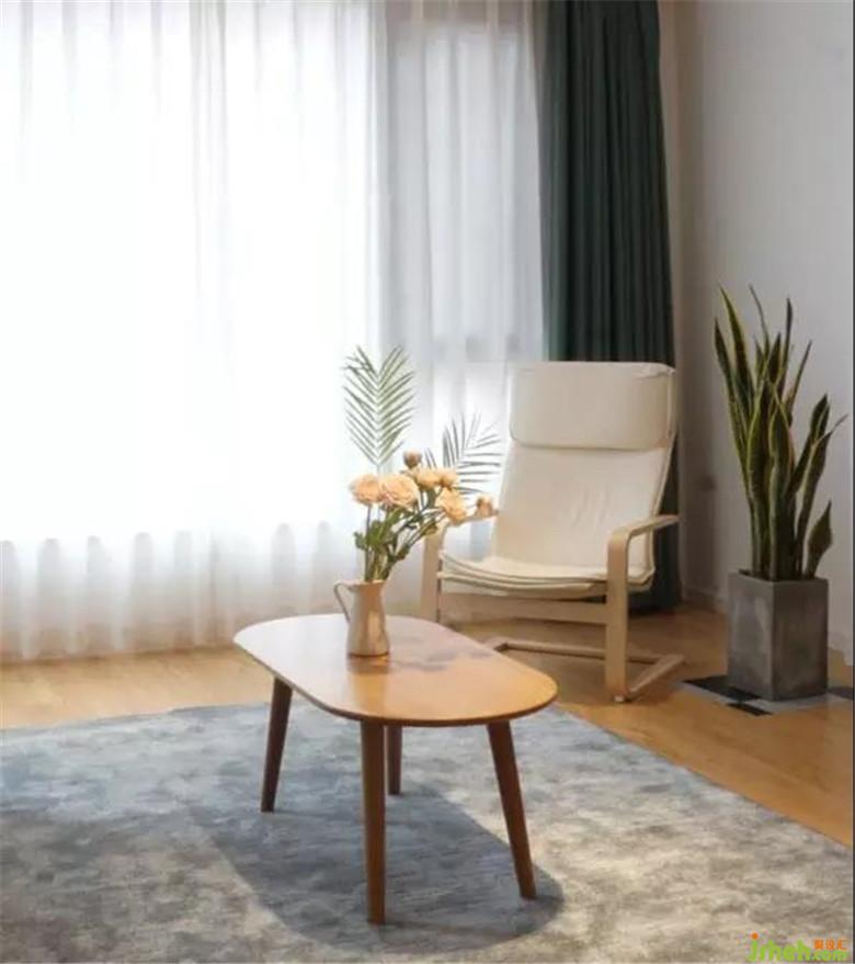 角落里的白色椅子愜意地靠著窗邊,午后溫暖的陽光透過玻璃窗散落在地毯上,在靜謐的空間中上演光與影的奏鳴曲,看起來仿若一幅安靜躺在美術(shù)館的現(xiàn)代名畫,溫馨美好。