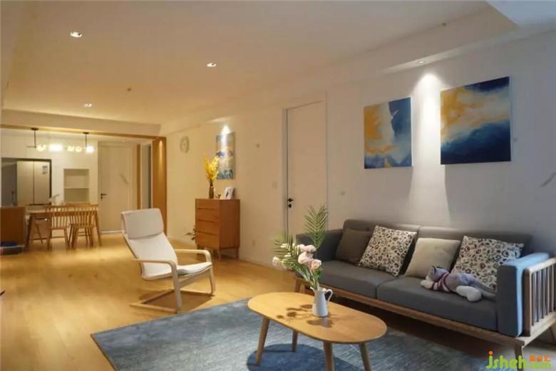 白色作為客廳的主色調(diào),呈現(xiàn)出簡潔大氣的空間視覺效果,裝修公司再輔以木色,營造出溫暖舒適的家庭氛圍。