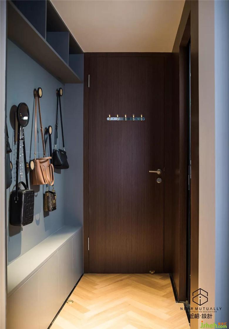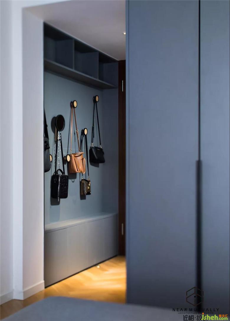 主臥墻面處裝修公司設(shè)計(jì)了跳色的藝術(shù)掛鉤