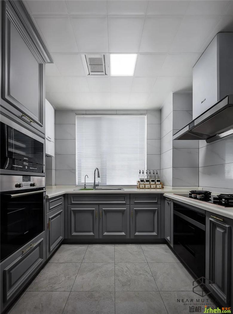 廚房本來(lái)是很小的,裝修公司往外擴(kuò)了一些,增加了使用面積。定制的柜子大大增加了儲(chǔ)物能力。