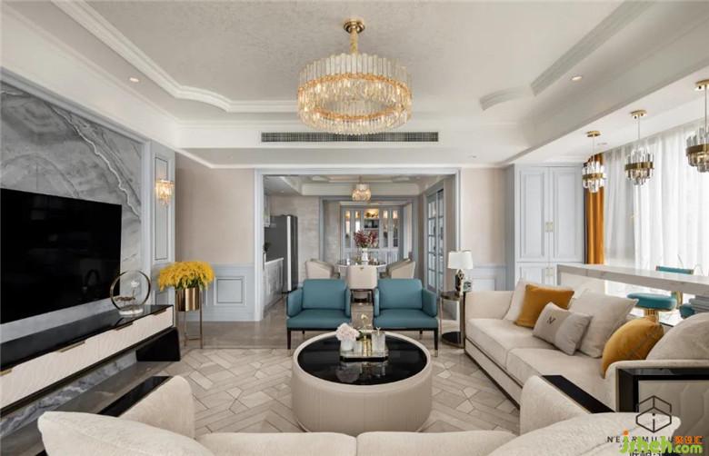 會(huì)客聊天,待人接物,客廳承載著家居格調(diào)的主脈。落地窗通透明亮,裝修公司選擇清爽舒適的軟裝搭配,格局平衡協(xié)調(diào),局部靈動(dòng)點(diǎn)綴,整體空間在保留典雅大氣的同時(shí),于細(xì)節(jié)處體現(xiàn)精致的生活格調(diào)。