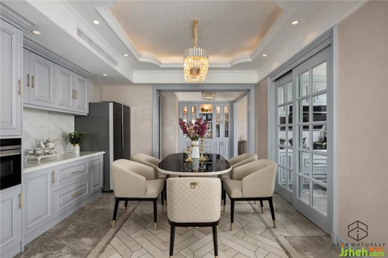 餐廳容納著茶余飯后的歡聲笑語,也見證著所有珍貴的團圓時刻。白色的護墻板搭配黑色的桌面,整體通透,延伸視覺且統(tǒng)一。餐廳裝修公司依然秉承著整體優(yōu)雅休閑,細節(jié)處精致用心的設計理念。