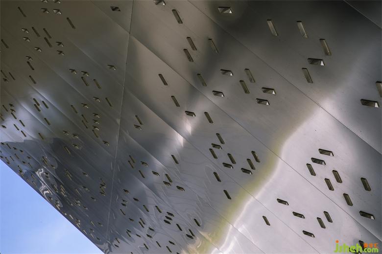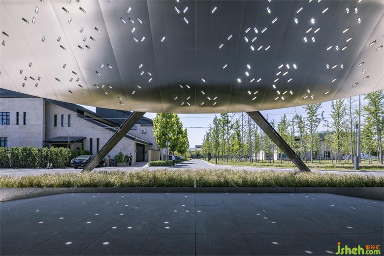 X字母也被用作美術(shù)館的主要標(biāo)志,在入口處呈現(xiàn)為兩根相交的H形結(jié)構(gòu)柱,為寬闊的弧形屋頂提供了支撐。美術(shù)館設(shè)計屋頂表面上的穿孔能夠濾過光線,在入口空間投下光影。由兩條線組成的“X”圖形還寓意著最基本的交互形式,與美術(shù)館在多學(xué)科方面的努力形成呼應(yīng):除了藝術(shù)家之外,X美術(shù)館還展示來自建筑師、科學(xué)家、工程師、音樂家和設(shè)計師的作品。