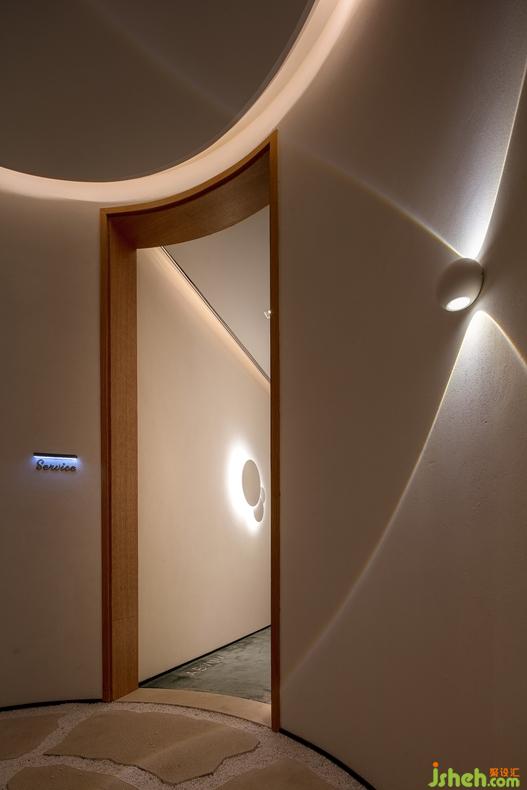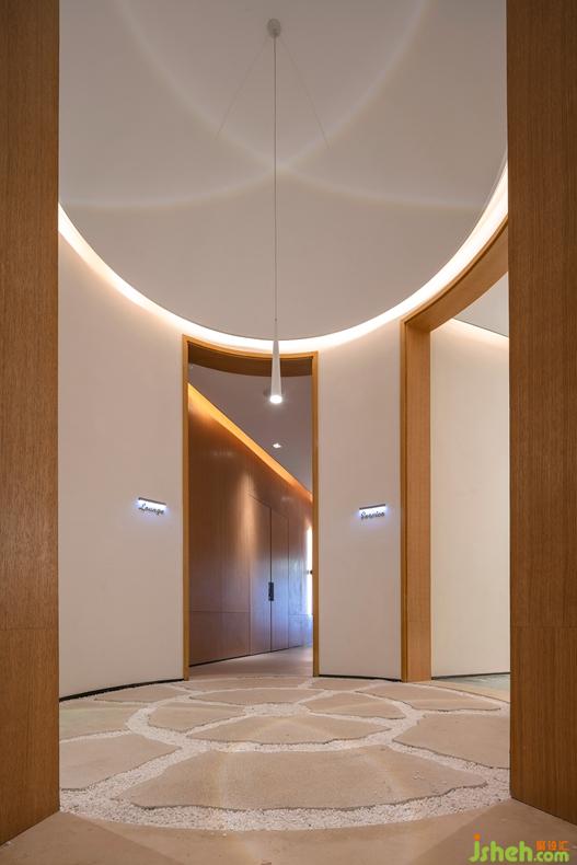 Asthejunction of interior circulations, the annularentryway leads to different functional areasincluding spa rooms,consulting rooms and lounge, etc.The poetic interaction of light and shadows, combined with fragrance of incense and relaxinglight music, enrich customers’ sensory experience in the space.
