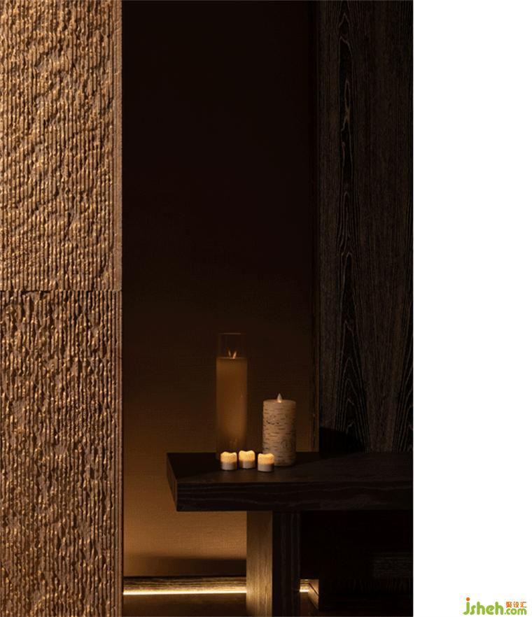 這一邏輯下,突破固有的條條框框,琉璃皝宮SPA設(shè)計(jì)以情緒的預(yù)設(shè),推導(dǎo)空間的形式、節(jié)奏的遞進(jìn)、一隅一景的美,成為了設(shè)計(jì)師最大的考量。這般空間畫(huà)面正如《陰翳禮贊》中所描繪的那樣,“在暗淡含蓄的陰翳之下,一切都被籠罩在柔和的溫情之中......滋生出‘萬(wàn)物皆有神靈’的美感。”真可謂“悠悠情趣,難于言喻”。