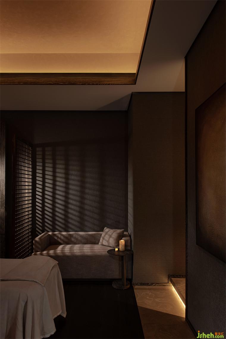 Faced with the grille, textured wall and soft light, people will be instantly wrapped up in the sense of comfort and ease released by the Spa space. " In the creation of lifestyles, experience and feeling as the non-negligible force are always influencing people’s decisions and striking at the heart."