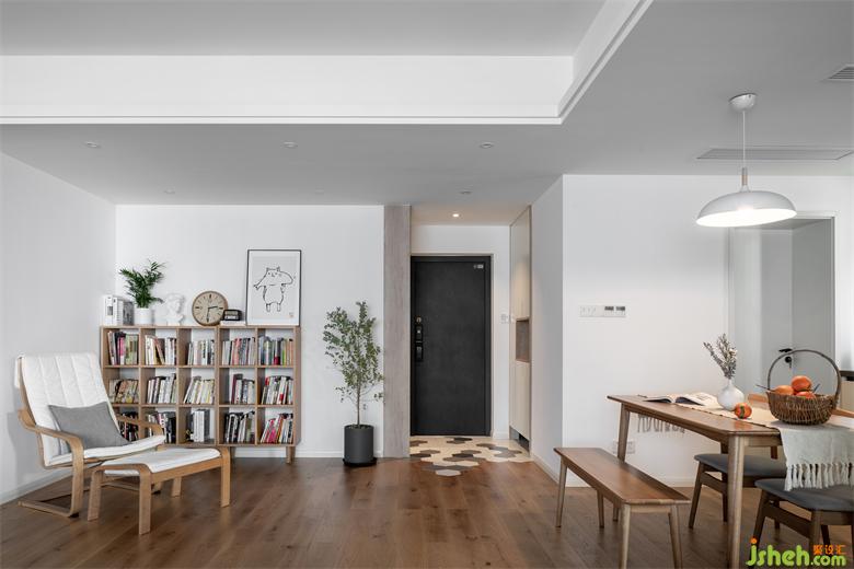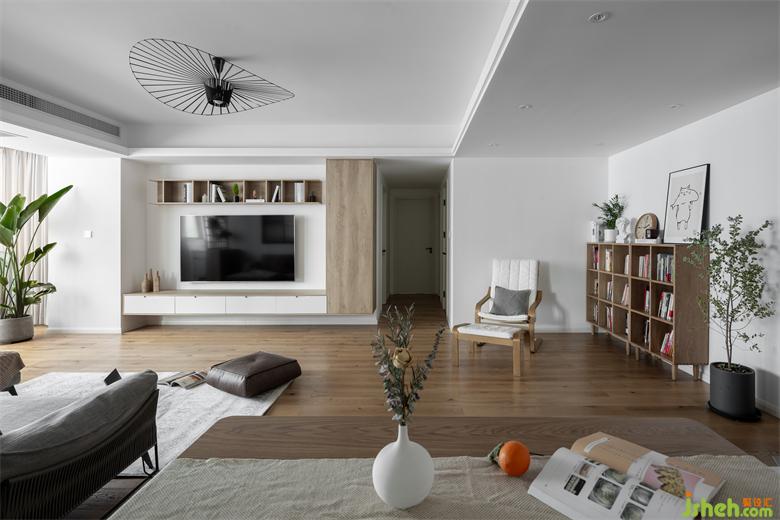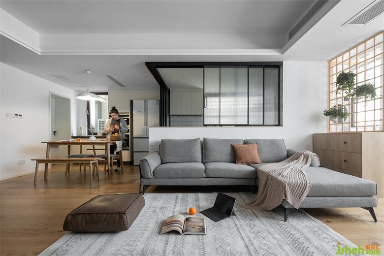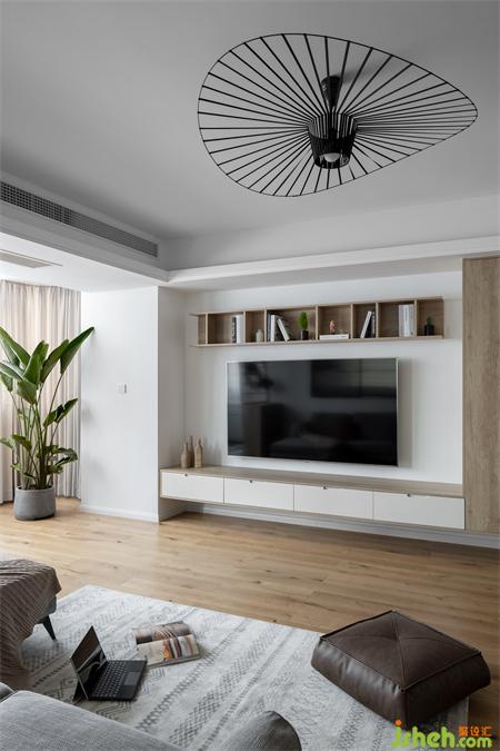 整個(gè)空間運(yùn)用了大面積的白色和原木色系,廈門(mén)家居設(shè)計(jì)柔軟的淺灰色沙發(fā)搭配米卡其色地毯,單椅,懶人坐墊,色彩的變化給空間帶來(lái)豐富的層次感。