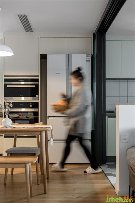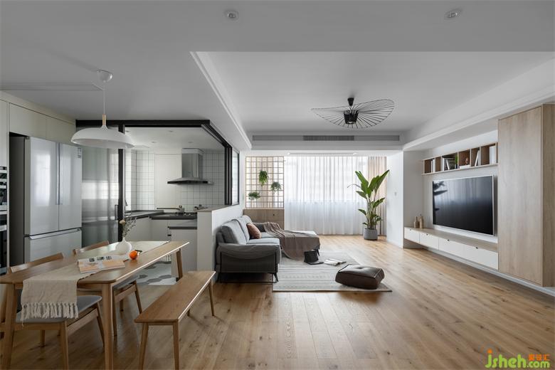 本案風(fēng)格定位明確,布局上面客餐廳的空間整體統(tǒng)一,半開(kāi)放式的廚房讓空間更加強(qiáng)烈。