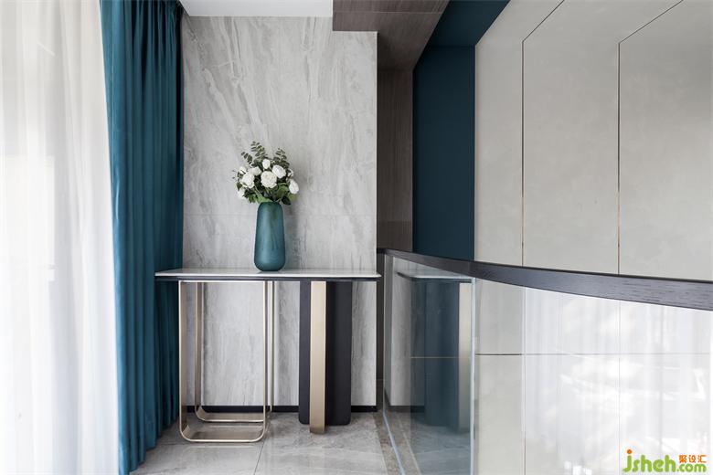 廈門豪宅設計空間能夠滿足業(yè)主的基本生活需求的基礎上,營造出時尚,優(yōu)雅和浪漫的空間氛圍。將整個空間采用簡潔的線條和溫馨淡雅的色調,勾勒出一個優(yōu)雅的實用性空間。通過憂郁的孔雀藍以及金屬線條來點綴,豐富空間的色彩層次。