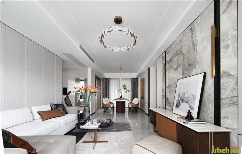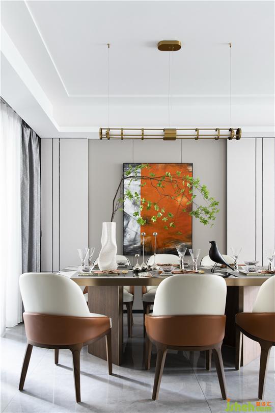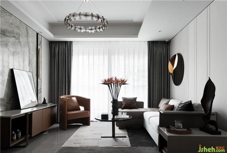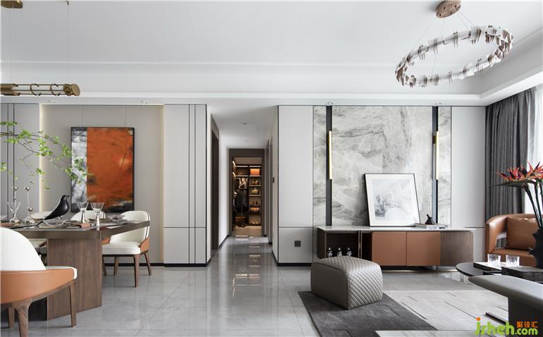 樣板房設(shè)計(jì)全屋空間以棉麻布藝、皮革、金屬增添空間的層次感,局部配以融于時(shí)尚的人文藝術(shù)品,不同材質(zhì)與質(zhì)感的融合,營造出室內(nèi)的高級精品與藝術(shù)感,空間使用橙色系加上高級灰咖,使空間呈現(xiàn)出現(xiàn)代時(shí)尚高雅低奢的格調(diào)。