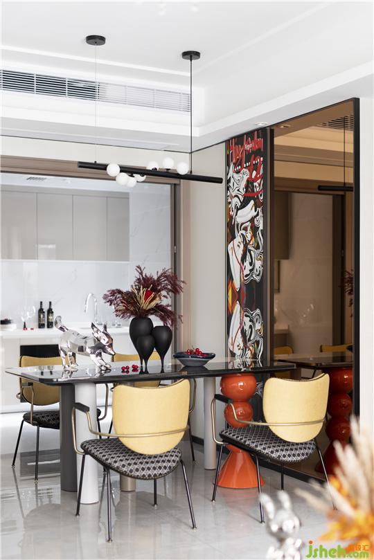 空間的設計始終是有所依據,任何天馬星空的藝術想象都有其生活的落腳點,這也是空間精神得以升華的根基。多種元素的穿插融入似乎恰到好的與簡凈、天然背道而馳,但是在設計師手中,卻實現(xiàn)了某種微妙的融合與滲入,讓整體空間的品格得到提升,使整個戶型呈現(xiàn)輕奢、浪漫,當代趣味的生活狀態(tài)。