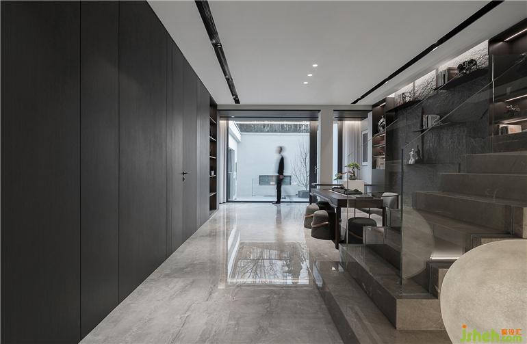 每一處空間細(xì)節(jié),都應(yīng)以人為本出發(fā),關(guān)照體驗(yàn)者的體驗(yàn),真正為生活而公館設(shè)計(jì)。質(zhì)樸自然的茶室空間,營(yíng)造著這座城市中的慢生活,為人的心靈留得一處理想的休憩之所。原始的巖石肌理、厚重的體塊構(gòu)造,設(shè)計(jì)在平靜而克制的基調(diào)中,刻畫(huà)清新脫俗的空間氣息,喚醒人心中的安寧與平靜。而與茶室空間相連接的外部庭院,可以是一家人放松休閑的棲息地,亦可以是好友聚會(huì)的娛樂(lè)空間......這里延續(xù)著生活的高品質(zhì)體驗(yàn),為平凡的日常注入了嶄新的生命力。每個(gè)人心中都有著對(duì)于家的不同理解,在整體簡(jiǎn)約純粹的基調(diào)中,整體空間以簡(jiǎn)白與深棕兩種色調(diào),鋪敘空間至簡(jiǎn)的美學(xué)氛圍。