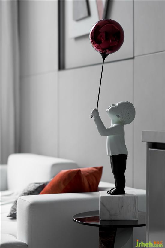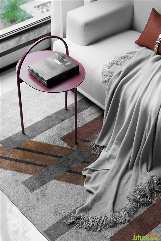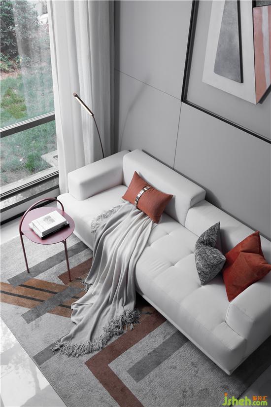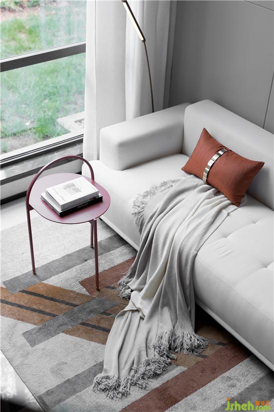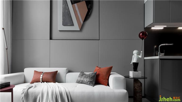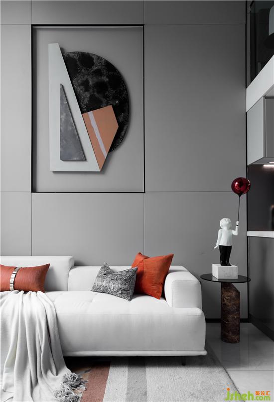 在低飽和度灰調(diào)的鋪敘下,采取不同層次的橘色作為點(diǎn)綴,勾勒著簡約靈動的空間氛圍。墻面的抽象拼貼掛畫與幾何構(gòu)圖的地毯形成對映,長沙樣板房設(shè)計(jì)搭配極具藝術(shù)格調(diào)的裝飾小品、材質(zhì)柔軟的布藝沙發(fā)、不規(guī)則大理石凳幾,空間呈現(xiàn)出和諧統(tǒng)一的當(dāng)代美學(xué)秩序。