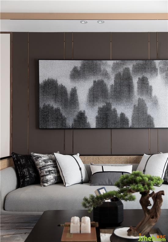 鵝黃色搭配深棕色,冷暖色調(diào)的自然融洽,給人一種由內(nèi)到外的高貴氣質(zhì),也體現(xiàn)一種精致的生活態(tài)度?;揖G色作為點(diǎn)睛之筆,如驚鴻一瞥,打破沉靜之美,讓空間更加靈動(dòng)。