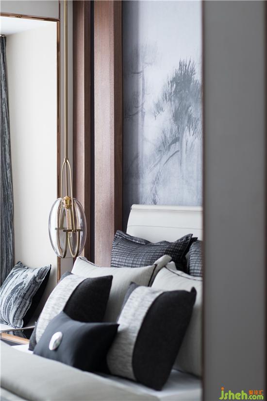 樣板房設(shè)計(jì)師對(duì)詩(shī)歌意境進(jìn)行提煉、抽象、變形簡(jiǎn)化,將世家子弟的儒雅底蘊(yùn)與富有張力的現(xiàn)代浪漫結(jié)合,高貴的氣質(zhì)在高級(jí)灰與暖人的棕色結(jié)合的剎那占領(lǐng)整個(gè)空間,出于對(duì)傳統(tǒng)文化內(nèi)蘊(yùn)的理解和傳承文脈的高遠(yuǎn)信念,在吊燈溫潤(rùn)的質(zhì)感與盈透的色澤中,閃耀著粼粼波光。