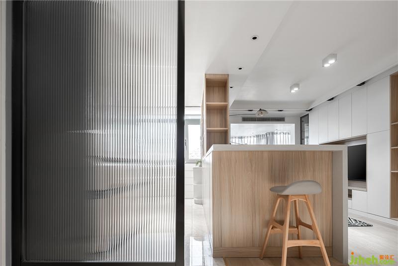 原本房子是沒有玄關(guān)的,離電梯門很近,如果開門沒有遮擋,顯然不盡人意。要是強(qiáng)制增加隔斷,又容易破壞寬敞空間的大好采光。所以在入門玄關(guān)的位置,北京室內(nèi)設(shè)計(jì)師加入了單扇的長虹玻璃。既能滿足單向采光進(jìn)入玄關(guān),透光不投影的隔斷也具備遮擋性。營造光影的效果從開門起,就成為左鄰右舍羨慕嫉妒的房子,是空間最恰當(dāng)?shù)恼Z言。