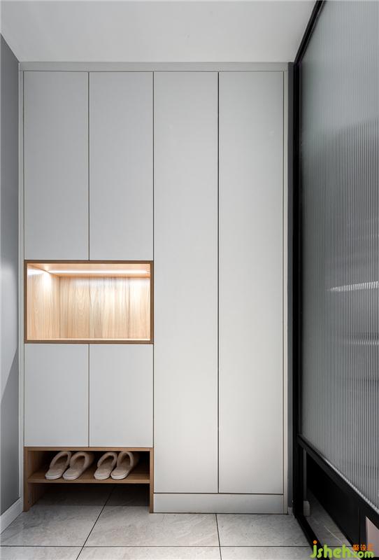 入戶柜極大提升空間的利用。內(nèi)嵌的感應(yīng)燈帶作為過度光源,讓深夜回家,進(jìn)門開燈的一瞬間不再晃眼。