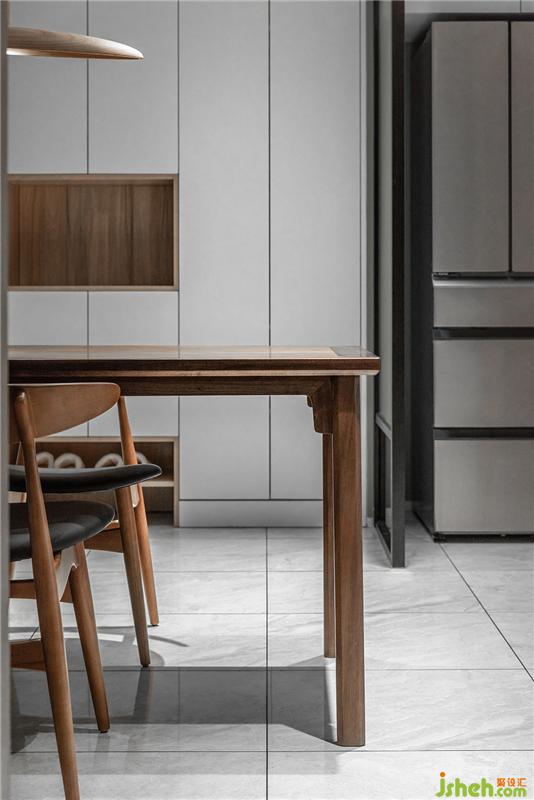 餐椅選自Norhor的經(jīng)典胡桃款,搭配深胡桃餐桌和的木修遠(yuǎn)家的花語無聲雙頭餐燈,美貌和實(shí)力并存。