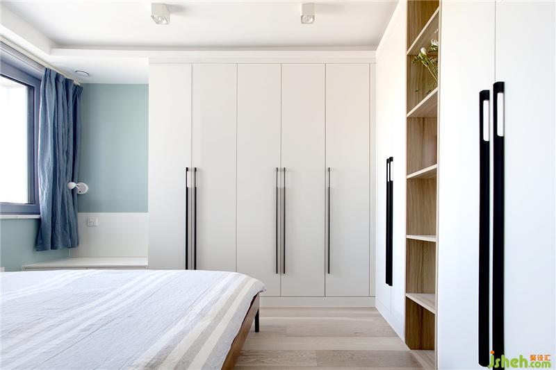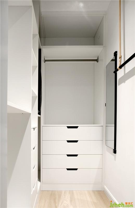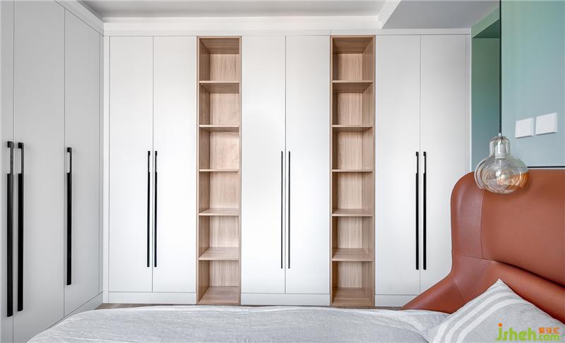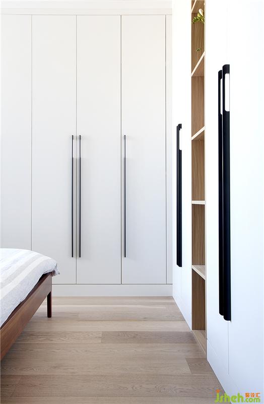 簡單干凈的折角平板柜,足足有5100mm的延長尺寸,充分發(fā)揮臥室最大的收納容積量,可以把MrWrong一家所有的衣物全部塞到里面。