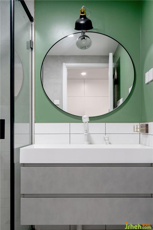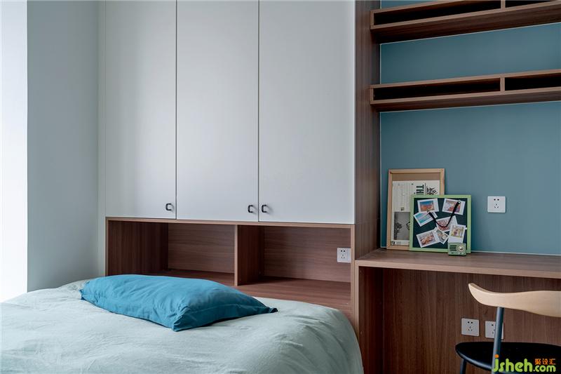 次臥用了點藍色的漆,配合深色的柜體,也不會顯得空間沉悶,以后也可能父母來住這里,所以沒有使用大面積深色。