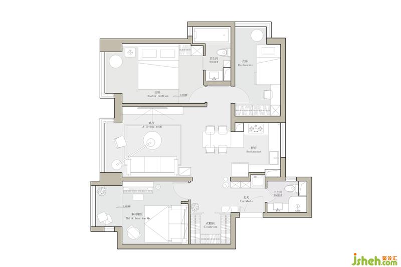 原戶型比較方正,最大的缺點就是主臥的收納不好解決,同時餐廳的位置也比較尷尬,入戶沒有鞋柜,每個空間的利用不是很高。