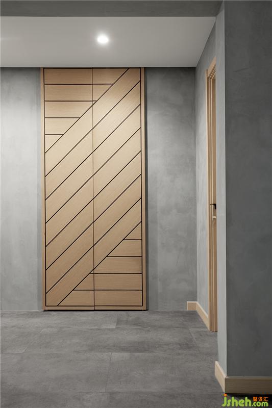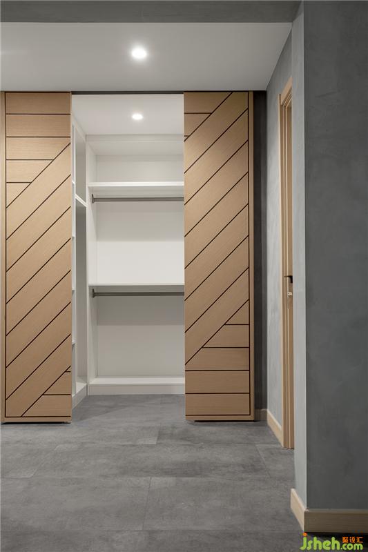 為了使衣帽間的空間利用率提高,故而裝修設(shè)計了推拉門,雖說是推拉門,但是也是一個裝飾,倆個門合上的時候原木質(zhì)感加上幾何黑線,一種現(xiàn)代元素和自然元素結(jié)合的美感就出來了。