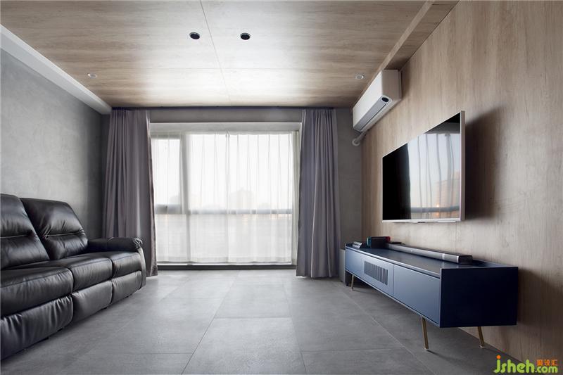 客廳是落地窗,光線自然沒得說,所以家里的材質(zhì)運用也不受顏色深淺的限制,屋里地面都是砂巖質(zhì)感的水泥磚,電視背景的木飾面也延伸到頂面,坐到沙發(fā)的位置看過去,感覺非常好,像是身處大自然的環(huán)境里。很多人擔(dān)心會壓抑,其實不會,當(dāng)這個材質(zhì)本身蘊含了很多信息后我們看到的第一眼不會是壓抑,只有這個材質(zhì)帶來的無限遐想和感官上的享受,像是置身到自然界里。
