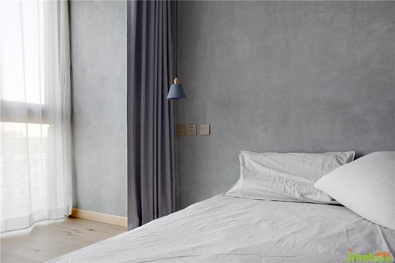 每一個(gè)物品都有它自己獨(dú)特的魅力,結(jié)合到一起就有不一樣的化學(xué)反應(yīng),比如床頭這個(gè)水泥燈罩的吊燈,和地面的原木地板加上床品的布藝質(zhì)感,直接襯托了它的精致和美感。