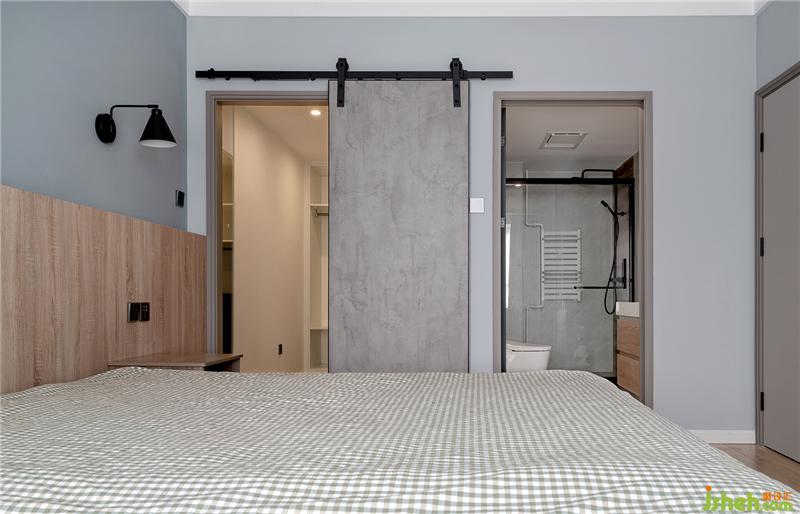 臥室增加衣帽間,水泥灰色的谷倉(cāng)門(mén),給空間帶來(lái)一點(diǎn)工業(yè)風(fēng)的感覺(jué)。