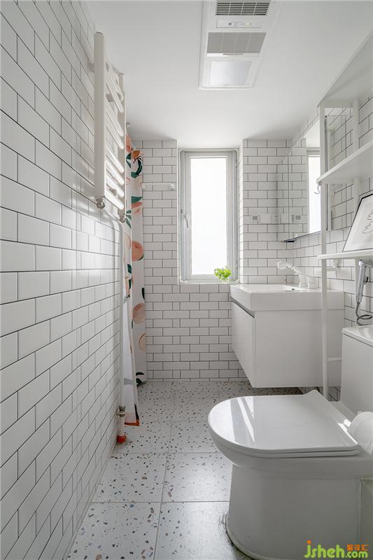 衛(wèi)生間地面水磨石墻面是工字型的300*600的小白磚,不用考慮小磚鋪貼費用,預(yù)算緊張的朋友可以考慮。頂面是耐水石膏板吊頂涂刷防水乳膠漆飾面,在衛(wèi)生間上方?jīng)]有設(shè)備所以采用了耐水石膏板吊頂。