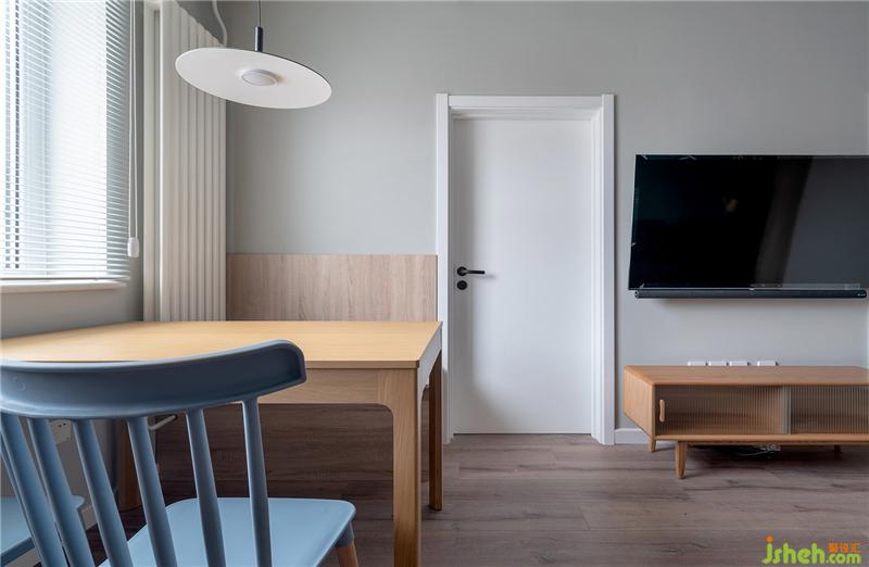 餐廳窗戶選用純白的百葉簾,百葉簾的的自由度很高,可以調(diào)節(jié)葉片角度控制光線的射入,能夠給室內(nèi)帶來極具線條美感的光影效果,也易于拆卸清洗。