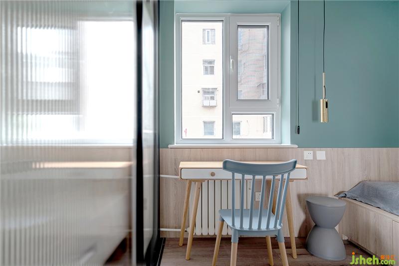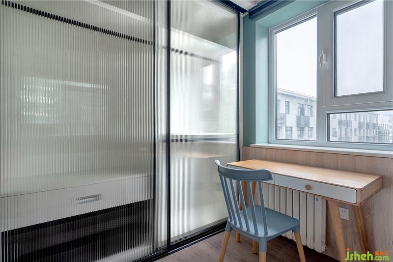 書桌一側的衣柜選用鈦鎂合金窄邊框長虹玻璃推拉門,顏值超高通透感十足。安裝在書桌下方的散熱片要提前考慮好尺寸,避免產(chǎn)生不必要的尷尬。