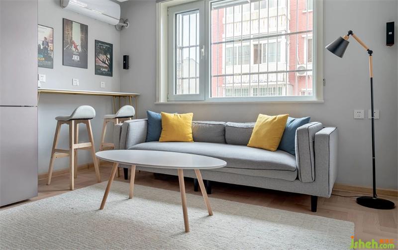 客廳沙發(fā)一角淺灰色(太空漫步)墻漆面,灰色的布藝沙發(fā)搭配著暖灰色的地毯,讓整體的空間統(tǒng)一舒適。