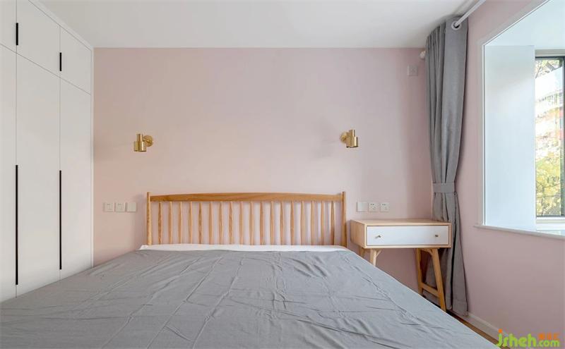 裝修設(shè)計(jì)應(yīng)屋主要求,墻面刷了女主喜歡的淺粉色。黃銅材質(zhì)的壁燈質(zhì)感還是很強(qiáng)的,床和梳妝臺(tái)都是購(gòu)買成品。