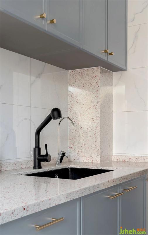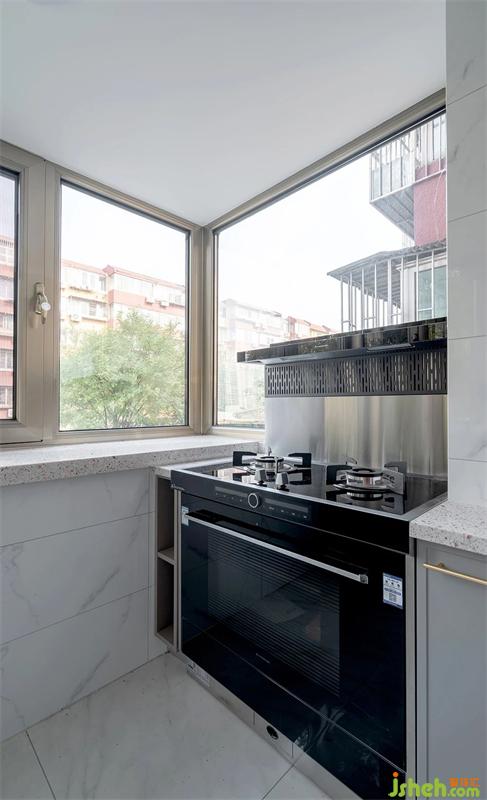 廚房增加了儲(chǔ)物空間,裝修設(shè)計(jì)利用陽(yáng)臺(tái)的空間,把灶臺(tái)和洗衣機(jī)都放了進(jìn)來(lái)。窗戶做了外飄窗,擴(kuò)大了炒菜區(qū)域的操作范圍。
