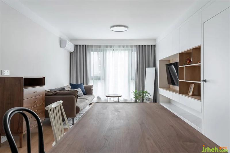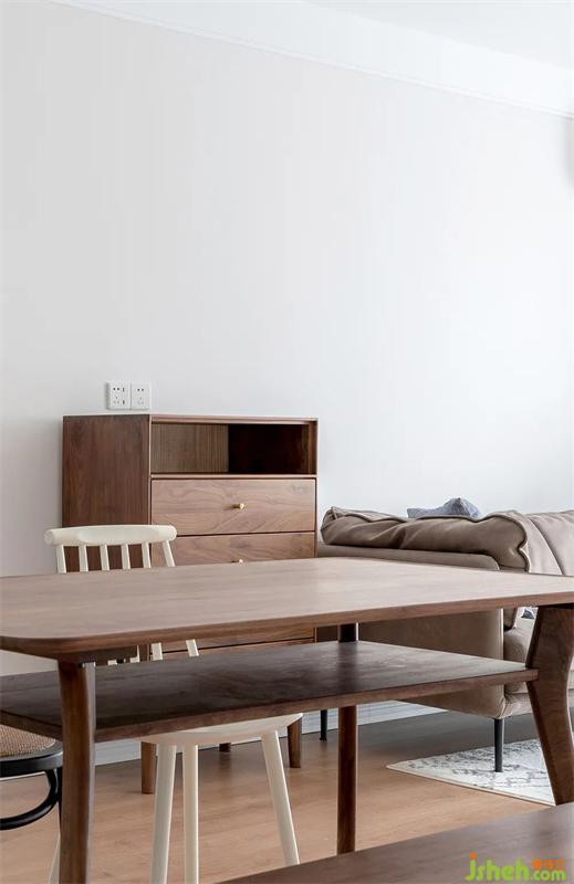 沙發(fā)旁邊設(shè)置小邊柜,承擔(dān)雜物和小件物品的收納。